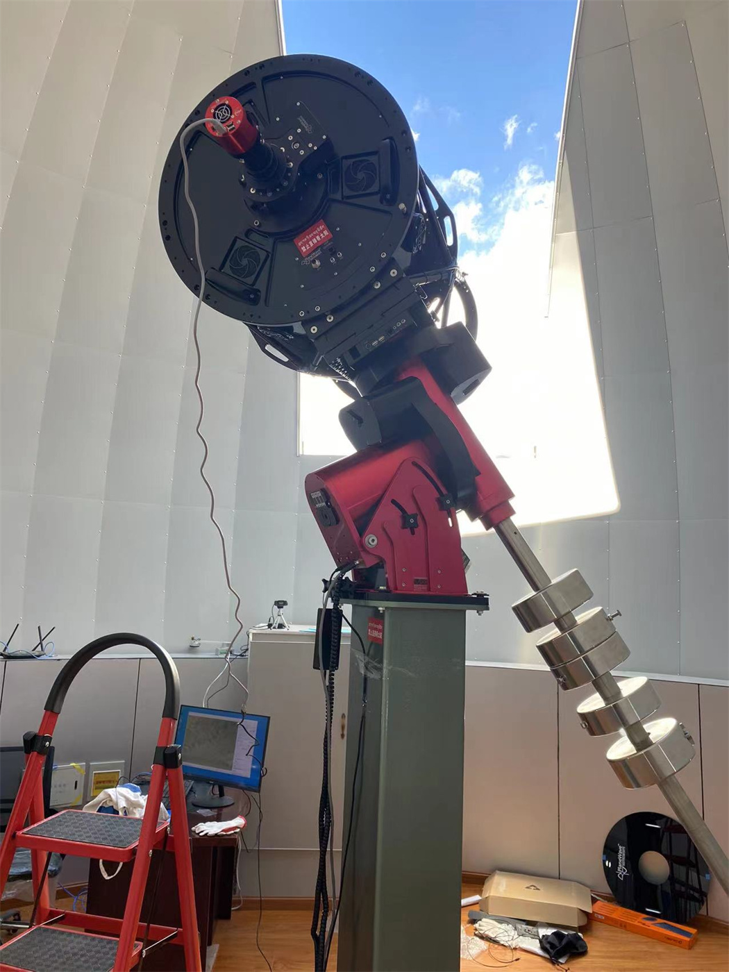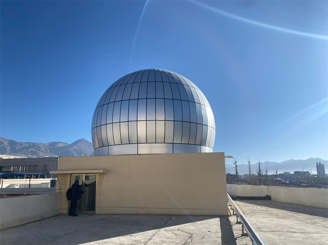 根據(jù)拉薩藏醫(yī)院天文臺使用要求,定制8米天文圓頂,經(jīng)典式樣。為了美觀以及耐用,外板采用1.2毫米銀灰色鋁板,內(nèi)板采用1毫米氧化鋁板,天窗使用暗藏式,天窗傳動為上下開啟式機械傳動,關(guān)起時是平的。為適應(yīng)拉薩地區(qū)夏天熱冬天冷的氣候現(xiàn)狀,我們創(chuàng)新地在天文夾層中添加加隔音隔熱棉,這樣圓頂內(nèi)溫度能相對穩(wěn)定。同時配置大口徑望遠鏡及智能隨動裝置,可滿足全天域星空觀測。